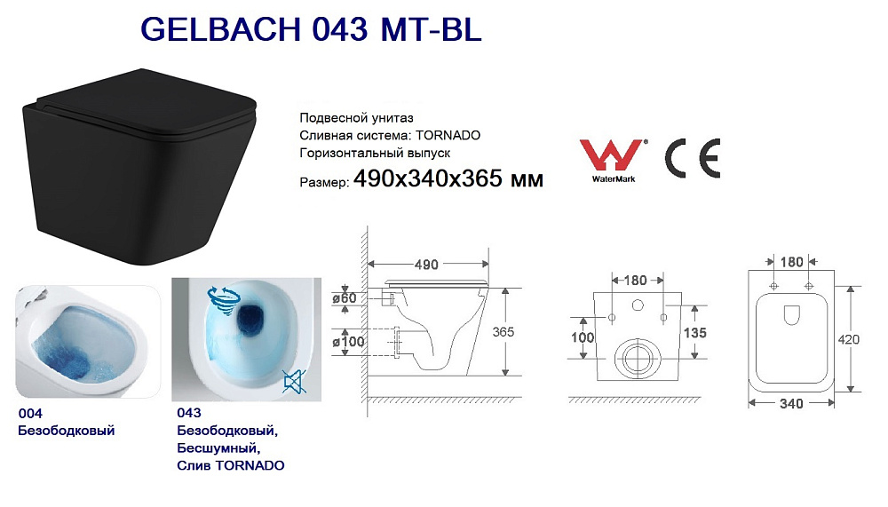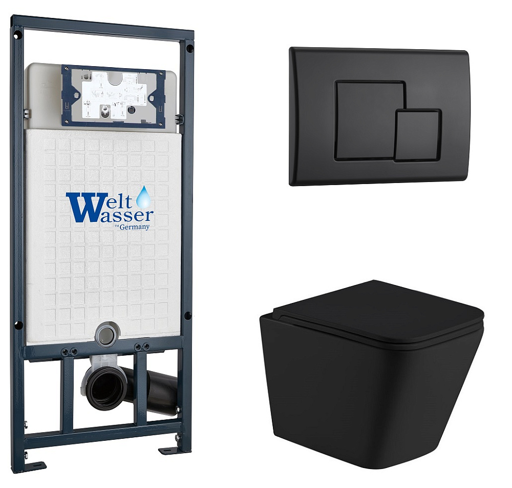 Унитаз от немецкого производителя WeltWasser. Инсталляция: * Монтажная рама+бачок+кнопка смыва+уплотнитель * Пластиковый бачок слива в пенопласте для бесшумного слива воды * Усиленная рама. * Регулируемая глубина до 50 мм. * Усиленные регулируемые ножки от 0 до 200 мм * Уплотнитель между плиткой и унитазом * Кнопка смыва 3/6 л на выбор (квадратная или круглая) * Межосевое расстояние под крепеж унитаза 18 и23 см * Диаметр слива 90/110 мм. * Фановая труба в комплекте. * Установка в капитальную стену и в пол. * ПРЕИМУЩЕСТВО. Дополнительный крепеж посередине рамы. * Уникальная ширина рамы 410 см. Унитаз: УНИТАЗ ПОДВЕСНОЙ БЕЗОБОДКОВЫЙ RIMLESS * УЛЬТА ТИХИЙ СЛИВ * Технология слива TORNADO * Антивсплеск * Горизонтальный выпуск * Скрытые крепления * Сиденье: тонкое, быстросъёмное, дюропласт с микролифтом. * Антибактериальное покрытие (технология PureGuard) препятствует размножению бактерий * Особая глазурь для легкой очистки отталкивает известковые отложения и загрязнения Кнопка: * Кнопка смыва 3/6 л. Гарантия: 10 лет.