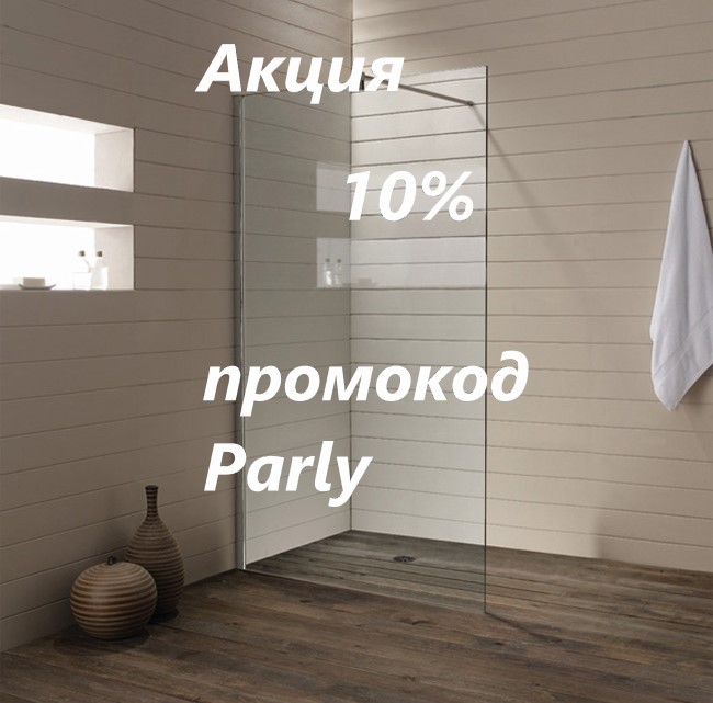 Получи скидку 10% при покупке стеклянной душевой перегородки бренда Parly.